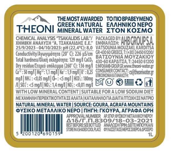 Το Φυσικό Μεταλλικό Νερό ΘΕΟΝΗ συνεχίζει την αλματώδη πορεία του στις εκτός των ελληνικών συνόρων αγορές, λαμβάνοντας αυτή τη φορά την αναγνώριση καταλληλότητας για προετοιμασία βρεφικών τροφών στη Γαλλία. σε λιγότερο από 2 έτη έχει κερδίσει την πρώτη θέση με την ανώτερη βαθμολογική κλίμακα, 3 χρυσά αστέρια από το Διεθνές Ινστιτούτο Γεύσης και Ποιότητας ‘iTQi’ στις Βρυξέλλες για 2 συνεχείς χρονιές 2014-2015, Διεθνή Οργανισμό ‘Monde Selection’ 2015, καθώς επίσης και από τον Ευρωπαϊκό διαγωνισμό Γερμανίας ‘DLG’ με το χρυσό βραβείο.