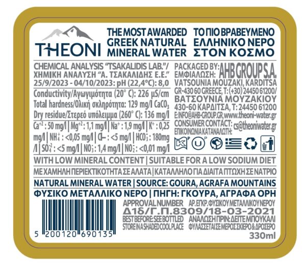 Από το 2019 το Φυσικό Μεταλλικό Νερό ΘΕΟΝΗ, στα πλαίσια της διαδικασίας έναρξης εξαγωγών στη Γαλλία, πέρασε με επιτυχία όλες τις απαραίτητες διαδικασίες, ελέγχους και αναλύσεις σε συνεργασία με τα γαλλικά διαπιστευμένα εργαστήρια αναλύσεων και εξειδικευμένα Ινστιτούτα, με αποτέλεσμα να μπορεί να κυκλοφορεί στη γαλλική αγορά με την επισήμανση ότι είναι κατάλληλο για την προετοιμασία βρεφικών τροφών.